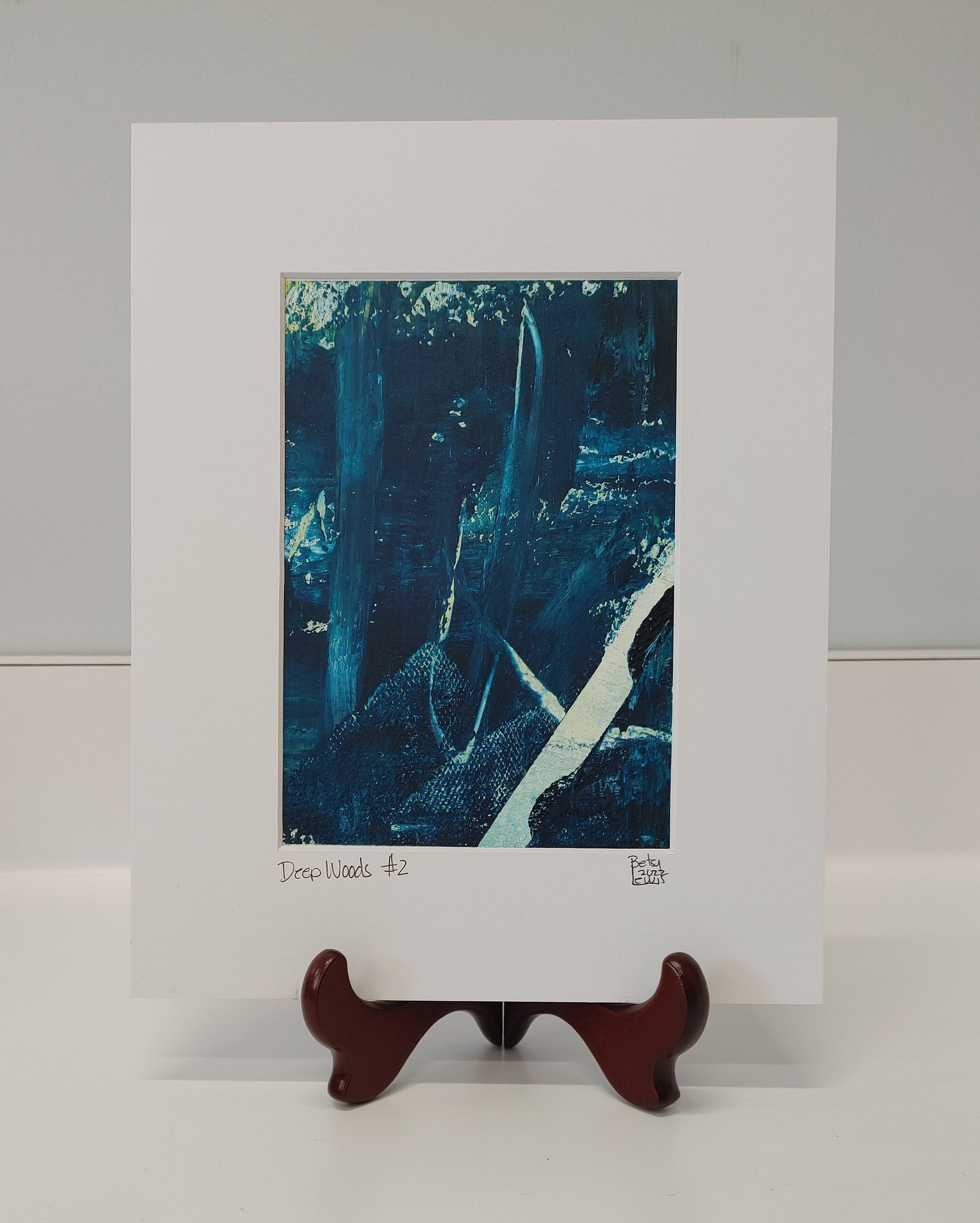 Deep Woods #2 is an original oil and cold wax painting. The painting itself is approximately 5" x 7" but it is matted in a white mat to 8" x 10" making it just right for a traditional frame. The painting has beautiful rich colors and textures.