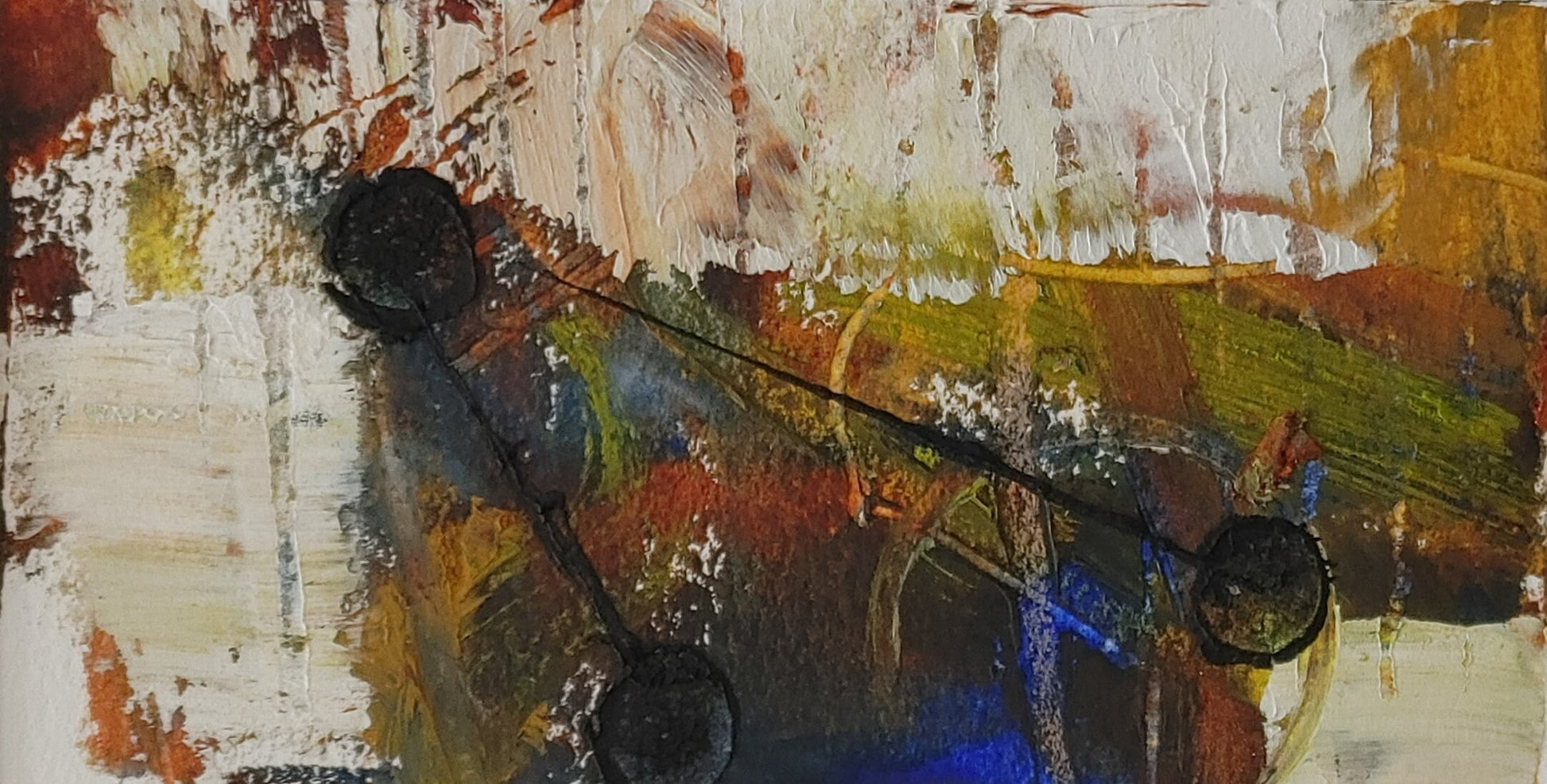 I like to include lots of textures in my paintings. I use several tools in my painting, including squeegees, chop sticks, palette knives, corrugated cardboard and other mark making items.