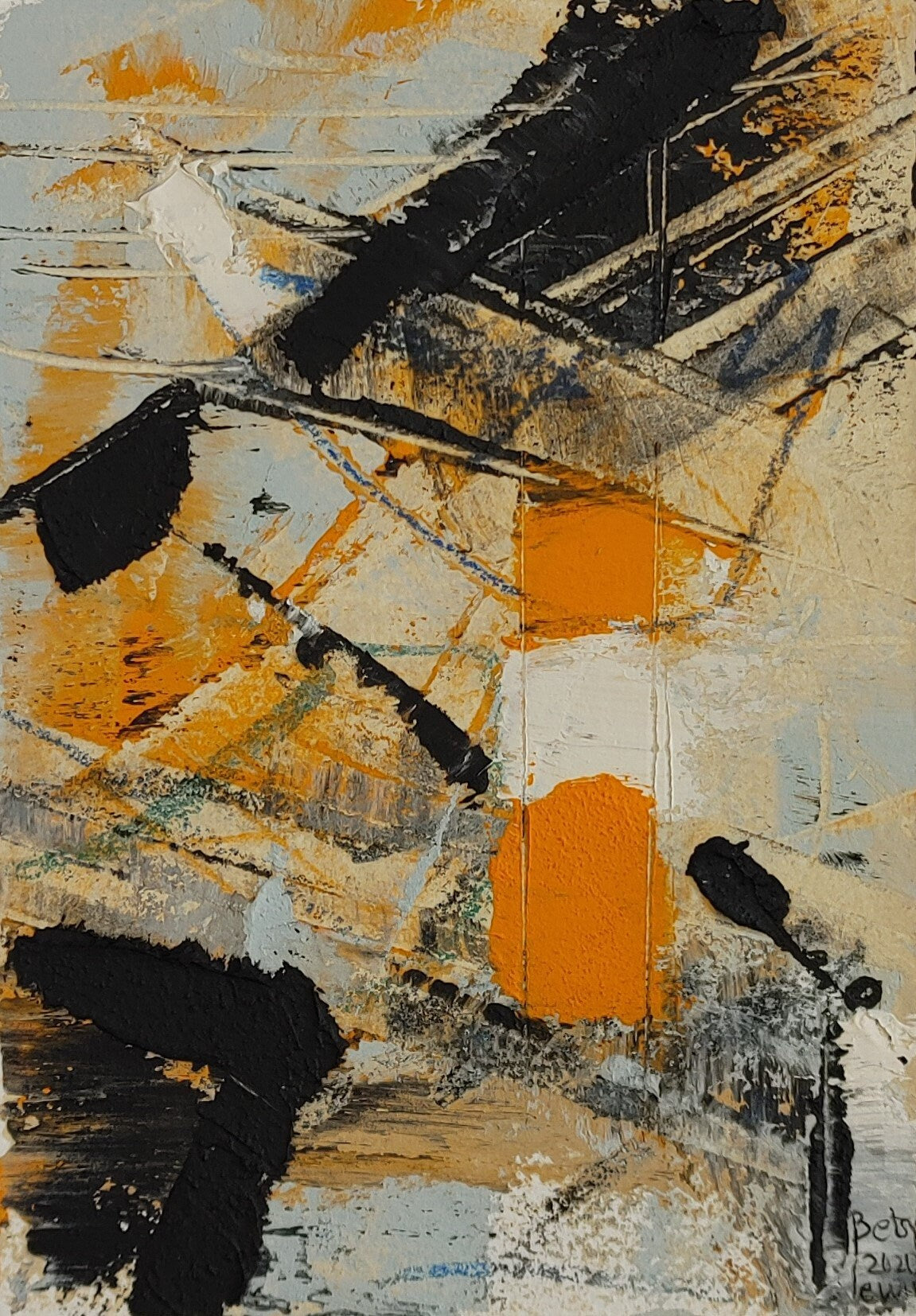I like to include lots of textures in my paintings. I use several tools in my painting, including squeegees, chop sticks, palette knives, corrugated cardboard and other mark making items.