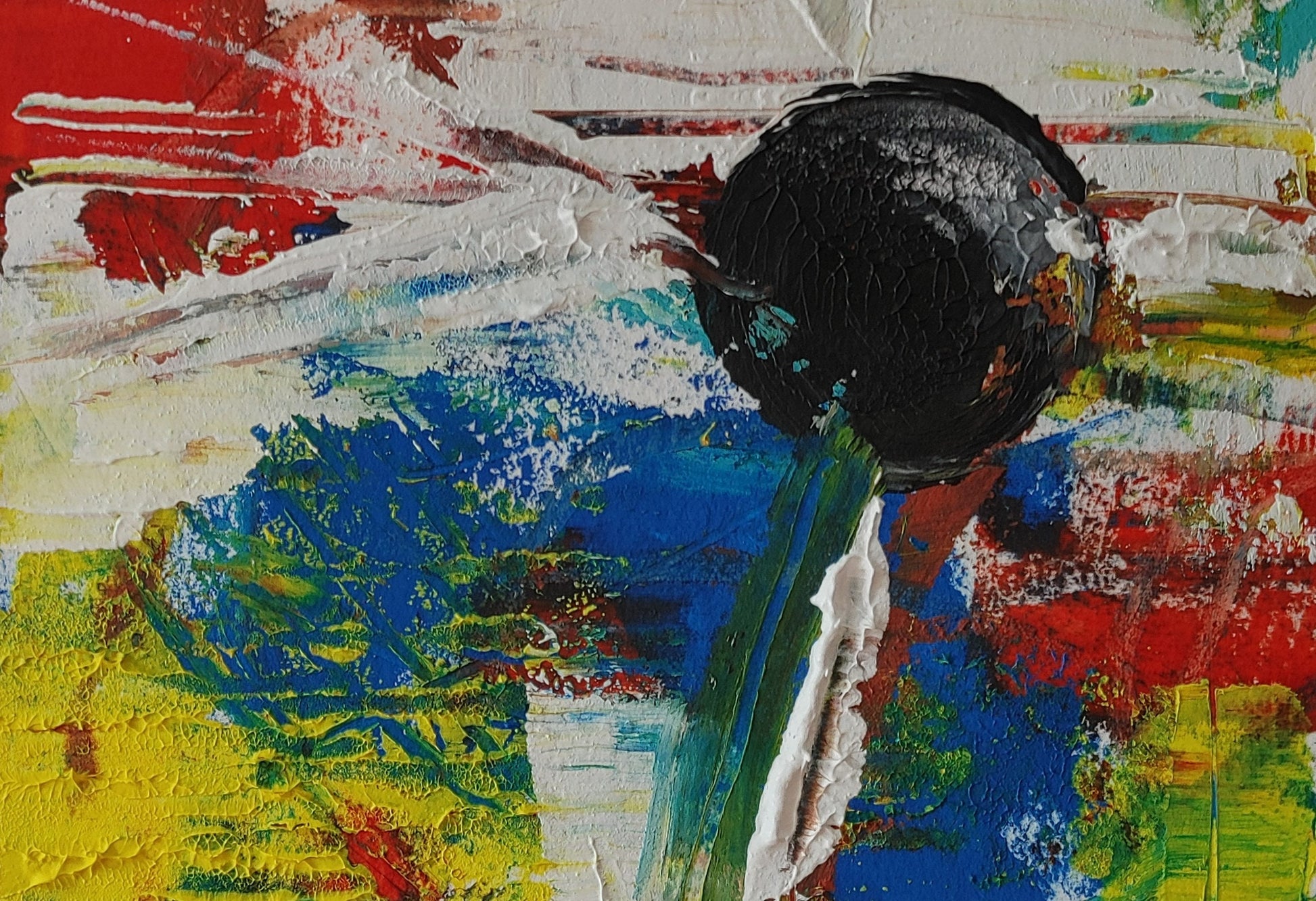 I like to include lots of textures in my paintings. I use several tools in my painting, including squeegees, chop sticks, palette knives, corrugated cardboard and other mark making items.