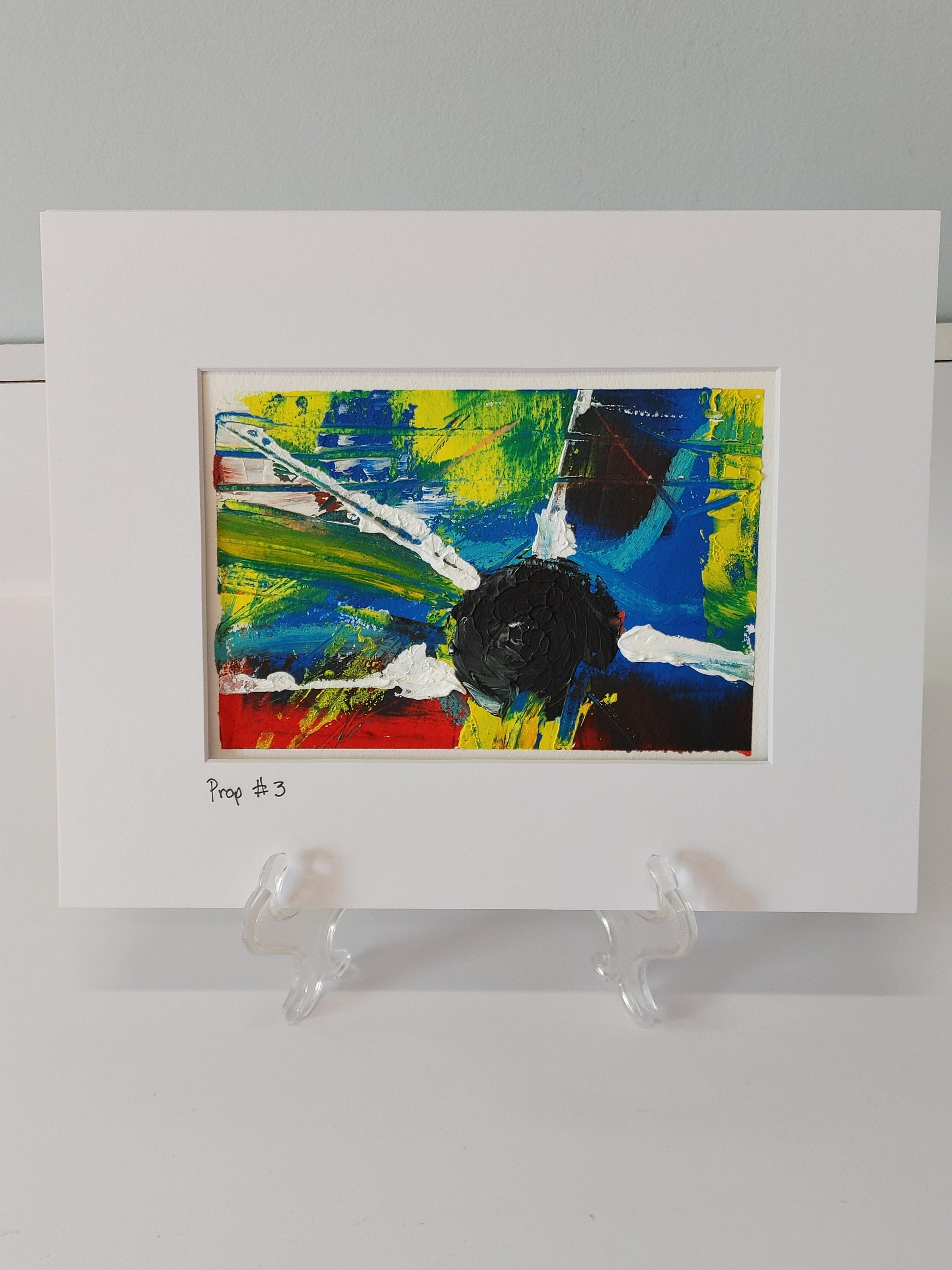 Prop #3 is an original oil and cold wax painting. The painting itself is approximately 5" x 7" but it is matted in a white mat to 8" x 10" making it just right for a traditional frame. The painting has beautiful rich colors and textures.