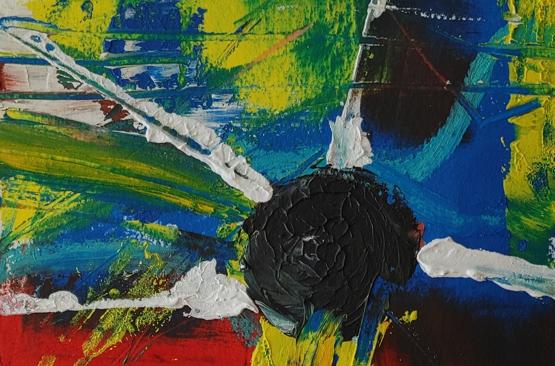 I like to include lots of textures in my paintings. I use several tools in my painting, including squeegees, chop sticks, palette knives, corrugated cardboard and other mark making items.
