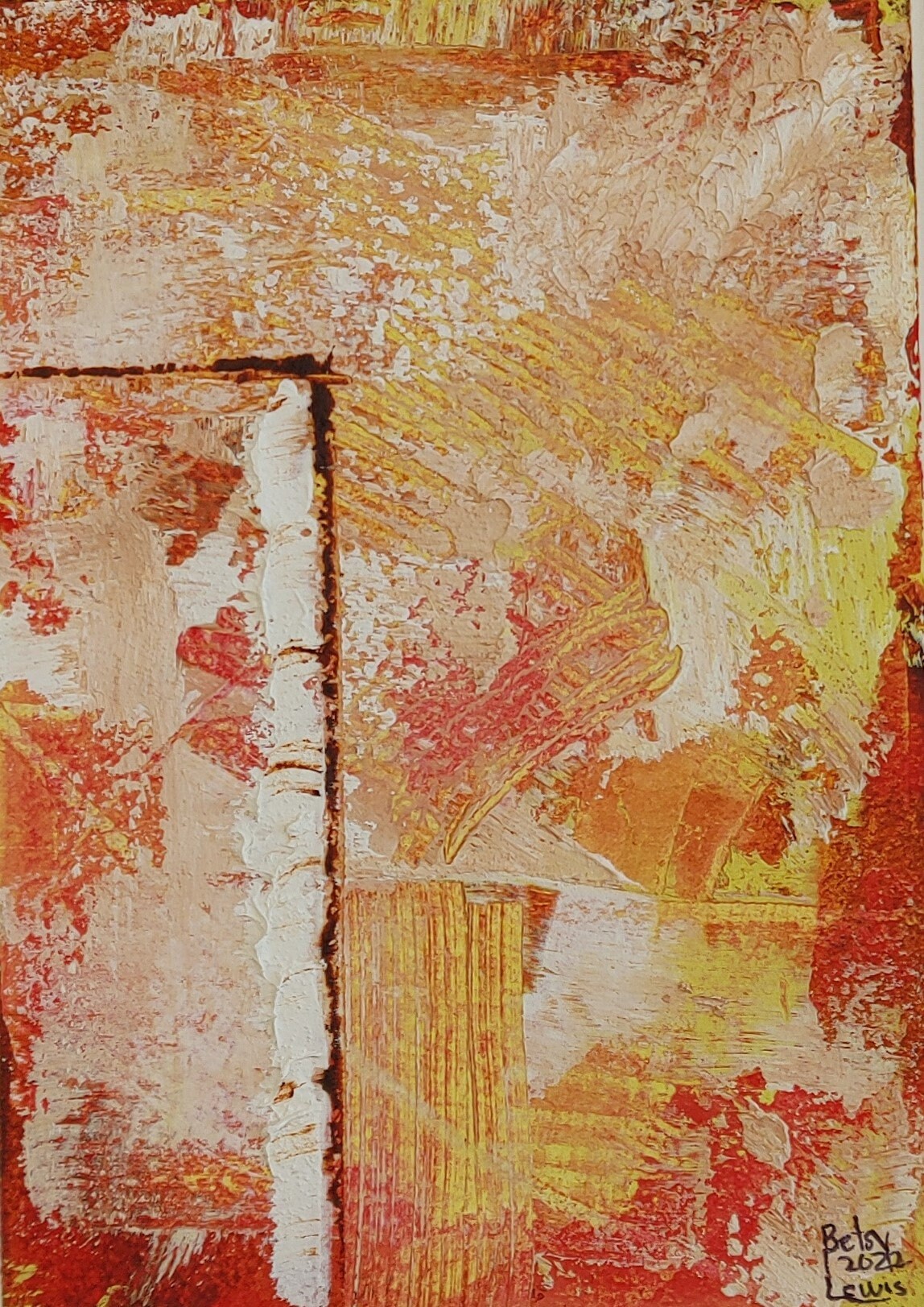 I like to include lots of textures in my paintings. I use several tools in my painting, including squeegees, chop sticks, palette knives, corrugated cardboard and other mark making items.