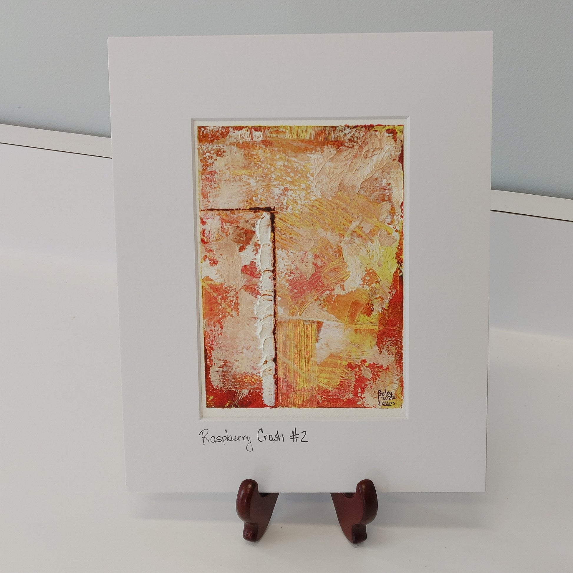 Raspberry Crush #2 is an original oil and cold wax painting. The painting itself is approximately 5" x 7" but it is matted in a white mat to 8" x 10" making it just right for a traditional frame. The painting has beautiful rich colors and textures.