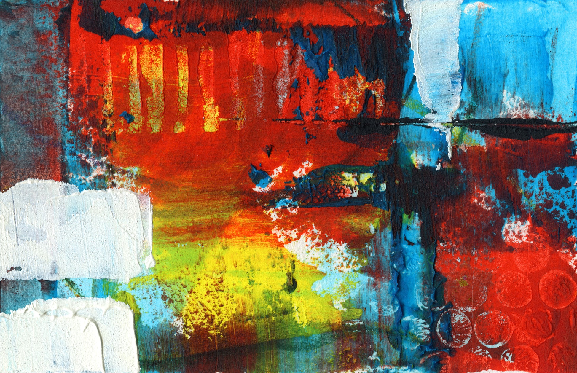 I like to include lots of textures in my paintings. I use several tools in my painting, including squeegees, chop sticks, palette knives, corrugated cardboard and other mark making items.