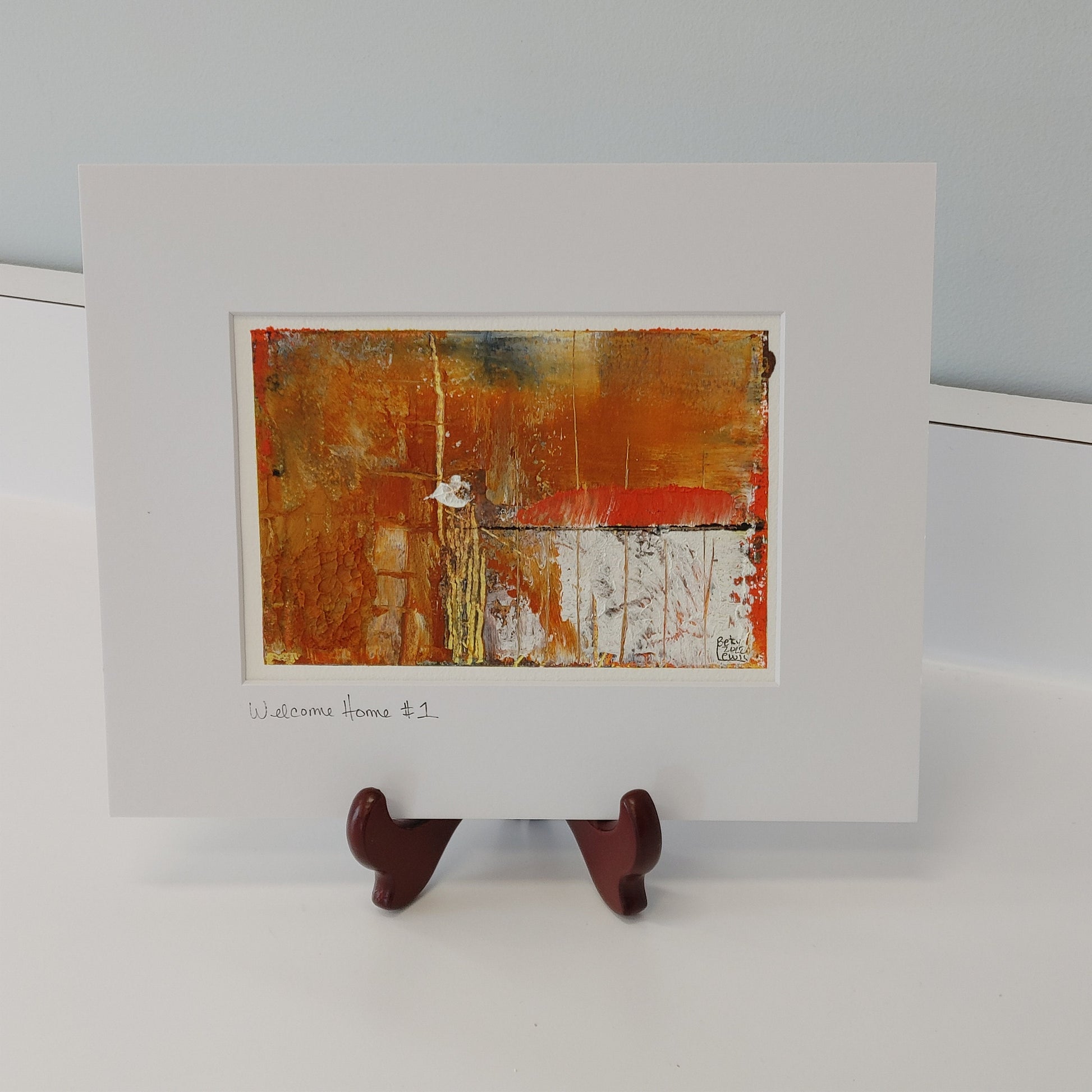 Welcome Home #1 is an original oil and cold wax painting. The painting itself is approximately 5" x 7" but it is matted in a white mat to 8" x 10" making it just right for a traditional frame. The painting has beautiful rich colors and textures.
